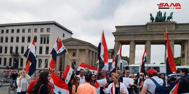 وأكد المشاركون في الوقفة التي جاءت بدعوة من الاتحاد الوطني لطلبة سورية فرع ألمانيا والمنتدى السوري الألماني الموحد “سوريون في ألمانيا” قرب بوابة براندنبورغ في العاصمة الألمانية برلين تضامنهم مع وطنهم الأم سورية بوجه الإجراءات الاقتصادية القسرية أحادية الجانب المفروضة على الشعب السوري ولاسيما ما يسمى “قانون قيصر” وحملوا العلم السوري ولافتات تؤكد وقوف السوريين في ألمانيا إلى جانب أهلهم بالوطن وخاصة في ظل الإرهاب الاقتصادي الذي تمارسه الولايات المتحدة الأمريكية بحق الشعب السوري.