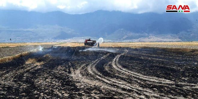 وأشار المهندس فايز محمد مدير الموارد الطبيعية في الهيئة بتصريح مماثل إلى أن مساحات حقول القمح التي التهمتها النيران قدرت بعشرات الدونمات كما أتلفت كميات من التبن والقش الموجودة في بعض المستودعات جراء امتداد النيران إليها.