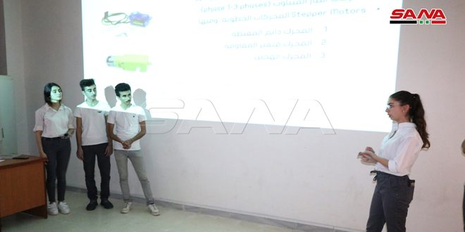 الطالب في الصف الثالث الثانوي الهادي زيدان تحدث لـ سانا عن مشروع فريقه المتمثل بـ “الطائرة رباعية المراوح لحماية الحدود الدولية” قائلاً إن المشروع يقدم منظومة حماية متكاملة من خلال القدرة على الكشف عن العنصر المتحرك وتصنيفه وإرسال رسالة إلى المركز مبيناً أن الفريق عمل على المشروع مع بداية العام الدراسي لكنه توقف مع فترة الحجر الصحي ليعاود الفريق العمل به والاكتفاء بالجانب النظري والبرمجي دون الوصول حالياً إلى التطبيق العملي.
