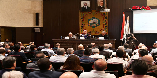 وناقش المجتمعون الصعوبات التي تعيق حركة تنشيط الاستيراد والتصدير بسبب الإجراءات الاقتصادية القسرية أحادية الجانب المفروضة على سورية وأثر ممارسة الإرهاب الاقتصادي من قبل بعض الدول على الشعب السوري والتي تجسد آخرها بما يسمى “قانون قيصر” وضرورة تضافر جميع جهود الفعاليات الاقتصادية والتجارية والصناعية والمجتمعية لمواجهة تداعيات هذا القانون الجائر وضرورة القيام بمبادرات تسهم في تخفيف الأعباء الاقتصادية والمعيشية عن المواطنين.