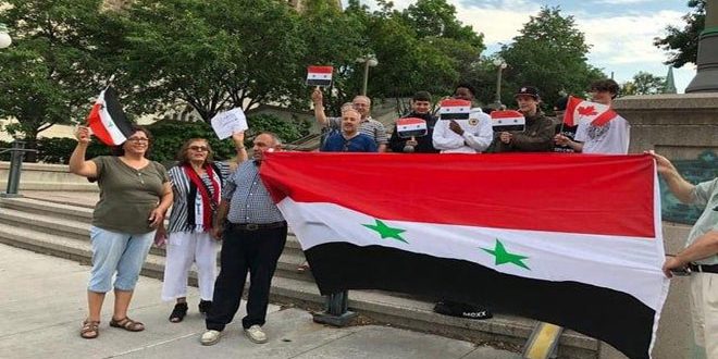 أقام عدد من أبناء الجالية السورية في كندا وقفة احتجاجية أمام مبنى السفارة الأمريكية في العاصمة أوتاوا، مطالبين برفع الإجراءات القسرية أحادية الجانب المفروضة على سورية.