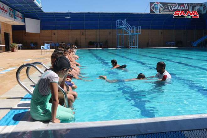 تشهد المنشآت السياحية في درعا إقبالا كبيرا على دورات السباحة لتعليم الأطفال من سن خمس سنوات وما فوق مبادئ وفنون هذه الرياضة فضلا عن استغلال أوقات الناشئة بما هو مفيد ونافع.
