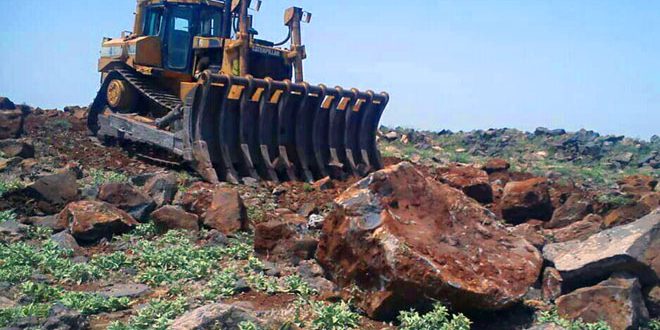 بدأ فرع مشاريع استصلاح الأراضي وتطوير التشجير المثمر في محافظة السويداء عمليات استصلاح وتأهيل 2500 دونم من الأراضي للموسم الحالي لتكون جاهزة للاستثمار وزراعة الأشجار والمحاصيل الحقلية.