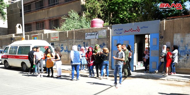 والإجراءات الصحية المطبقة في مركز الصحة المدرسية في جرمانا جاءت ترجمة لخطة الطوارئ الصحية التي تطبقها وزارة التربية بالتعاون مع وزارة الصحة خلال فترة سير الامتحانات العامة لتأمين السلامة الصحية وفق رئيسة المركز الدكتورة ريما العساف في تصريحها لمراسلة سانا.