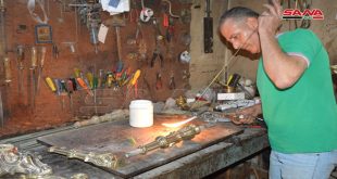 “ورثت هذه المهنة عن والدي وبقيت محافظا عليها حتى الآن فأنا أعمل فيها منذ أربعين عاما مذ كنت بعمر الخامسة عشرة حتى غدت جزءا لا يتجزأ من حياتي” بهذا الكلام بدأ بوعيطة حديثه لمراسلة سانا مضيفا “أجد المتعة في العمل من خلال تطويعي للنحاس بتشكيلات فنية متعددة وباستخدام أدوات يدوية لأنتهي بقطعة نحاسية متقنة خلال مدة تصل إلى عشرين يوما”.