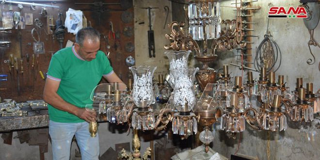 وهو منهمك في إكمال تصنيع الثريا يوضح بوعيطة.. أعمل على تطوير عملي بشكل دائم بما يتناسب مع التطور الحاصل وأذواق الناس حيث أدخلت الكريستال والزجاج المزخرف إلى الثريات واللمبديرات بهدف إضفاء الجمالية مؤكدا أن الحرفي السوري من أمهر صناع الحرف اليدوية وخاصة ما يتعلق بالحفر والزخرفة على النحاس حيث تشهد البيوت القديمة على تلك الصناعة وذوق هؤلاء المهرة وما تركوه من إرث وحضارة زينت بيوتهم وشرفاتهم وحدائقهم ومحالهم.