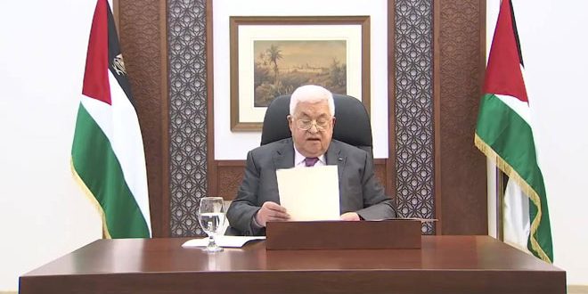 وقال عباس في كلمة له اليوم نقلتها وكالة وفا إن ضم أي شبر واحد من الأرض الفلسطينية المحتلة مرفوض وباطل كما أننا نرفض ما يسمى صفقة القرن وجميع المخططات الأمريكية الإسرائيلية الرامية إلى تصفية القضية الفلسطينية.
