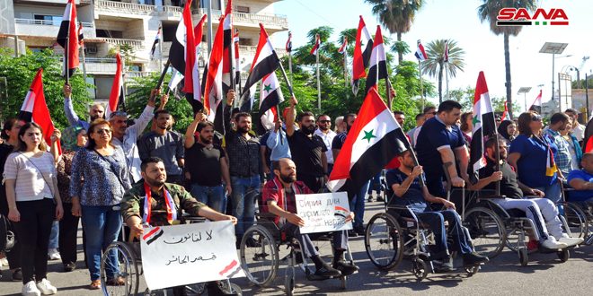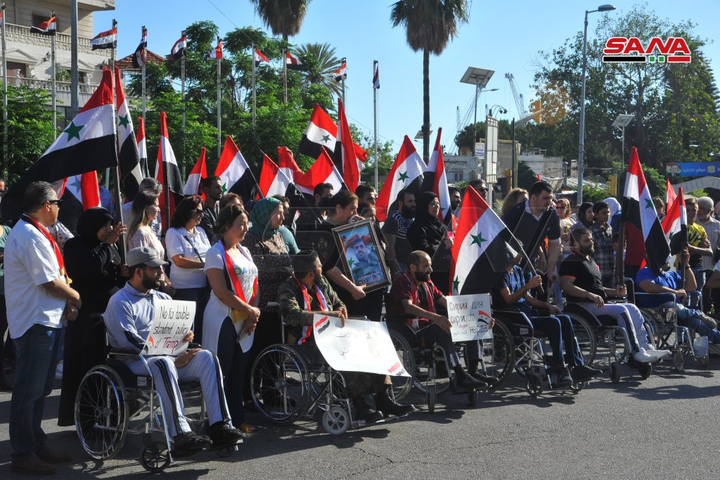 ندد المشاركون في الوقفة الوطنية التي نظمتها جمعية المقعدين وأصدقائهم أمام مبنى المحافظة باللاذقية اليوم بما يسمى “قانون قيصر” والإجراءات الاقتصادية القسرية أحادية الجانب المفروضة على الشعب السوري.