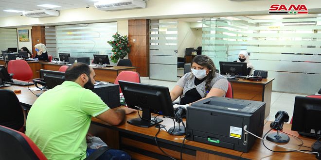الموظف أحمد الخلف أشار إلى أنه يتم إرشاد الطالب منذ دخوله وتوجيهه إلى الموظف المعني لتلبية طلبه بينما لفتت الموظفة افتخار عيد إلى قيام المسؤولين عن المركز بتطبيق تعليمات السلامة الصحية من خلال ترك مسافة أمان بين المراجعين والتعقيم المستمر حرصاً على السلامة.