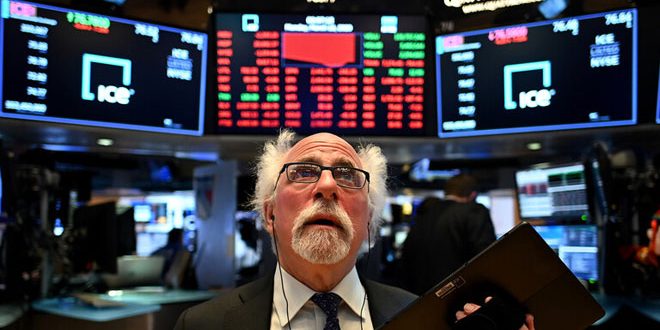 وذكرت رويترز أن مؤشر داو جونز الصناعي هبط 2.84 بالمئة إلى 25015.55 نقطة.