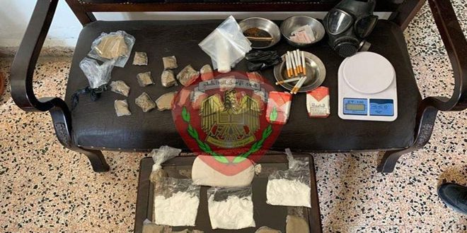وذكرت وزارة الداخلية في بيان تلقت سانا نسخة منه اليوم أنه من خلال المتابعة الحثيثة لتجار المواد المخدرة ومروجيها تمكن فرع مكافحة المخدرات في طرطوس من إلقاء القبض على شخص يقوم بترويج المواد المخدرة موضحة أنه من خلال تحري منزله عثر بحوزته على كيلو غرام من الحشيش المخدر وميزان إلكتروني إضافة إلى 153 غراما من الهيروئين المخدر وأوراق لف سجائر.