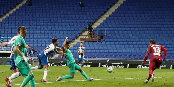 تغلب فريق ريال مدريد على إسبانيول بهدف وحيد دون مقابل في المباراة التي جمعتهما اليوم في إطار منافسات الجولة الثانية والثلاثين من دوري الدرجة الأولى الإسباني لكرة القدم “الليغا”.