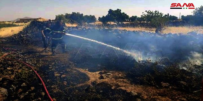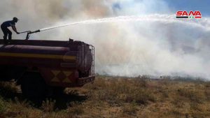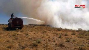 أخمد فوج إطفاء القنيطرة والدفاع المدني وعناصر دائرة الحراج بالتعاون مع الأهالي 60 حريقاً اندلعت خلال شهر حزيران الجاري طالت نحو 1700 دونم من الأراضي المزروعة بالأشجار الحراجية والزيتون ومحاصيل القمح ومساحات شاسعة من الأراضي الرعوية وذلك في محافظة القنيطرة وبعض القرى التابعة لريف دمشق الغربي.