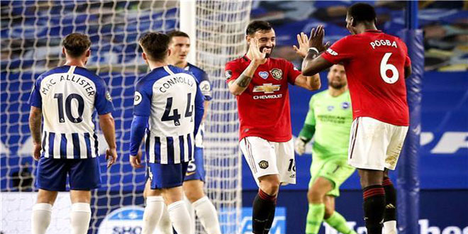 ويلتقي يونايتد في مباراته القادمة مع بورنموث المهدد بالهبوط بينما يحل برايتون ضيفاً على نوريتش سيتي متذيل الترتيب يوم السبت.
