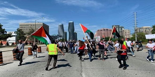 شهدت مدينة تورنتو الكندية مظاهرة حاشدة رفضا لمخططات الاحتلال الإسرائيلي ضم أجزاء من الضفة الغربية المحتلة.