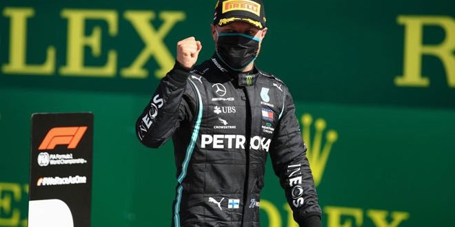 توج الفنلندي فالتيري بوتاس بسباق جائزة النمسا الكبرى في افتتاح موسم بطولة العالم لسباقات فورمولا 1 للسيارات مع فريق مرسيدس حامل اللقب خلال السباق الذي أقيم اليوم على حلبة ريد بول رينغ بدون جمهور بسبب جائحة فيروس كورونا المستجد.