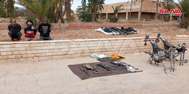 قضت الجهات المختصة في تدمر بريف حمص الشرقي في كمين محكم على 3 إرهابيين وألقت القبض على 3 آخرين شمال غرب منطقة السخنة.