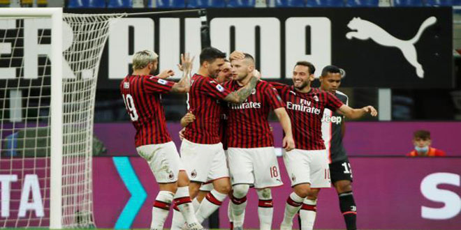 أحرز ميلان ثلاثة أهداف في خمس دقائق مذهلة في الشوط الثاني ليحول تأخره بهدفين لفوز على ضيفه يوفنتوس متصدر دوري الدرجة الأولى الإيطالي لكرة القدم 4-2 اليوم.
