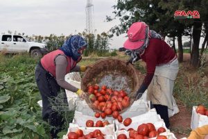 كاميرا سانا واكبت جني محصول البندورة في منطقة السفيرة والقرى والبلدات التابعة لها في تلعرن وتل حاصل وتسويقه حيث أوضح المزارع أحمد حج إبراهيم من منطقة السفيرة أن المساحة المزروعة بمحصول البندورة لهذا الموسم تبلغ هكتاراً واحداً وعمل على الاهتمام بها وسقايتها ومن المتوقع إنتاج ما يزيد على 120 طناً يقوم بتسويقها إلى مدينة السفيرة وبلدة تلعرن وهو مستمر بالعمل في حقله وزراعته بكل المحاصيل الزراعية لكنه يعاني صعوبة توفر المحروقات والسماد الزراعي.