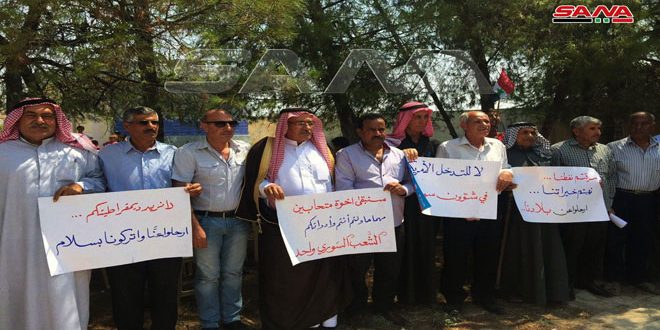 وأكد مختار قرية ذبانة عدنان منصور العامري في تصريح لمراسلة سانا رفض ما يسمى “قانون قيصر” الذي يستهدف الشعب السوري في لقمة عيشه والنيل من صموده ووقوفه إلى جانب وطنه وجيشه ورفض كل أشكال المؤامرات الرامية إلى تخريب سورية لإضعاف دورها في مقاومة المشاريع الاستعمارية في المنطقة.