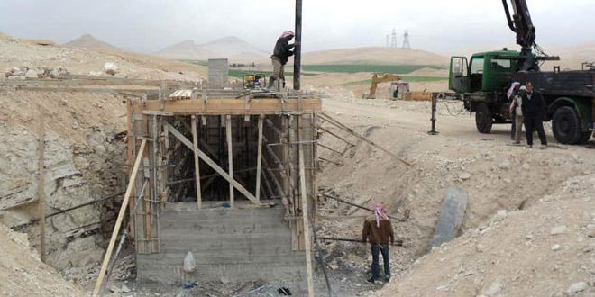 وأشار زيدان إلى استمرار العمل بأعمال مشروع محطة معالجة ابو حوري بتكلفة أكثر من 8ر1 مليار ليرة وبنسبة تنفيذ سنوية بلغت نحو 98 بالمئة ويهدف إلى التقليل من التلوث الحاصل في منطقة حوض العاصي والاستفادة من المياه المعالجة في الري إضافة لأعمال مشروع قناة الري الرئيسية في ريف حمص الشمالي واستمرار الأعمال بمشروع إنشاء سد وادي الوغر في النبك بقيمة عقدية بلغت 718 مليوناً ونسبة التنفيذ فيه 67 بالمئة لدرء السيول القادمة من الوادي باتجاه النبك إضافة إلى استمرار العمل بمشروع الصرف الصحي بحي الوعر بقيمة عقدية نحو 597 مليوناً وبلغت نسبة التنفيذ فيه 5ر79 بالمئة لنقل مياه الصرف الصحي من الحي إلى محطة المعالجة في الدوير.