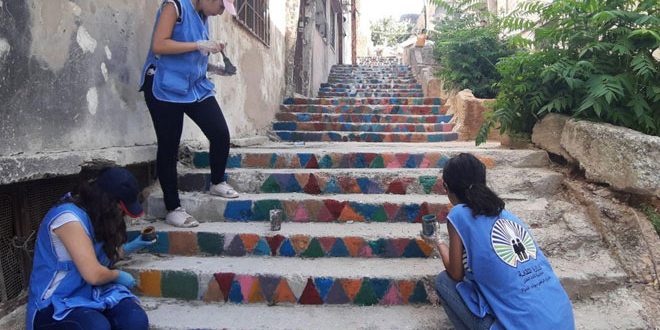 بمناسبة اليوم العالمي لمهارات الشباب الذي يصادف في الـ 15 من تموز من كل عام أطلقت مديرية ثقافة حمص مبادرة تطوعية تضمنت تلوين الدرج الأثري القديم في حي الحميدية بمدينة حمص.