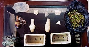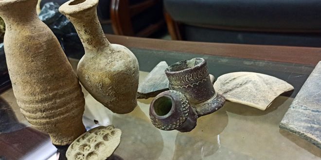 ولفت المصدر إلى أنه تم ضبط سبع قطع أثرية من تماثيل حجرية صغيرة وأوان فخارية بحوزة الشخص المقبوض عليه مبينا أنه تم تسليم القطع الأثرية إلى دائرة الآثار في محافظة حماة.