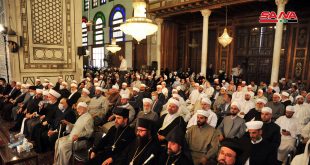 دمشق-سانا أقيم في الجامع الأموي الكبير بدمشق اليوم تجمع حاشد بمشاركة علماء الدين الإسلامي ورجال …