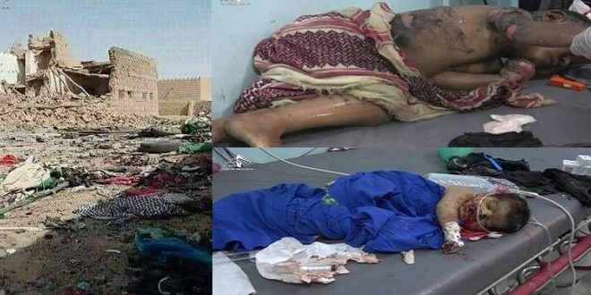 واستشهد أكثر من 24 يمنيا وأصيب عدد آخر بجروح أغلبيتهم نساء وأطفال في مجزرة جديدة ارتكبها طيران العدوان السعودي أمس بقصفه ثلاثة منازل في محافظة الجوف شمال اليمن.