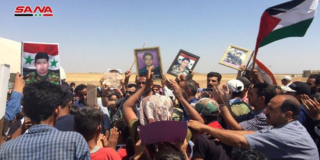 بدورها قالت المواطنة آسيا خضر السيد: نحن صامدون رغم كل أنواع الإرهاب الاقتصادي الذي تريد أمريكا ممارسته على الشعب السوري لافتة إلى أن “أمريكا العنصرية غير مرغوب فيها بين أبناء الشعب السوري ويجب أن تصل رسالتنا لهم.. اخرجوا من أرضنا”.