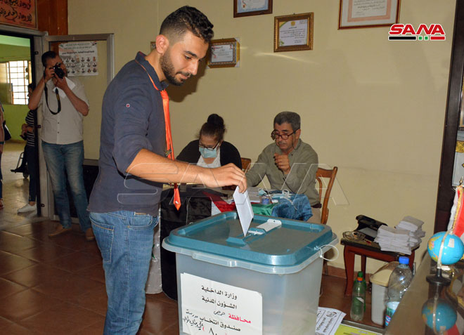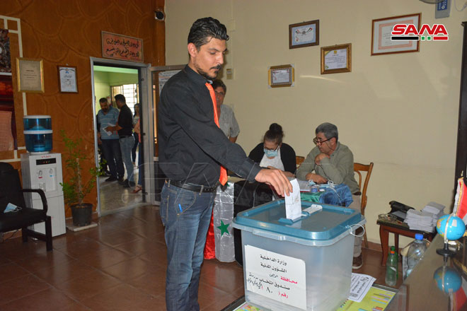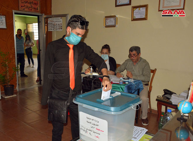 المواطنون السوريون يتوجّهون إلى مراكز الاقتراع لممارسة حقهم وواجبهم الدستوري في انتخابات مجلس الشعب للدور التشريعي الثالث.