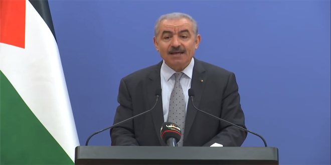 جدد رئيس الوزراء الفلسطيني محمد اشتية التأكيد على أنه لا تنازل عن إقامة الدولة الفلسطينية المستقلة على حدود الرابع من حزيران 1967 وعاصمتها القدس وعودة اللاجئين إلى ديارهم التي هجروا منها.