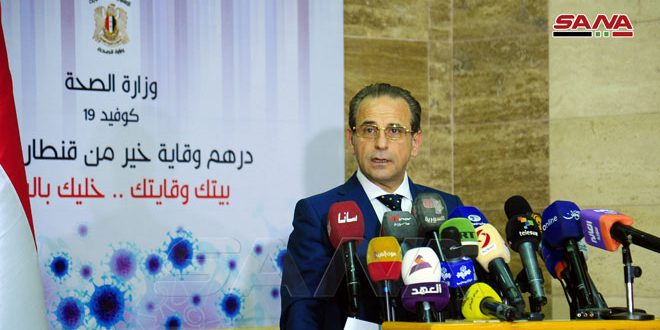 وشدد الوزير يازجي على أن الإجراءات الاحترازية هي التي تقي من حالة الانفجار في تفشي الفيروس الذي لا يمكن توقع زمان حدوثه لكن هذه الإجراءات ضرورية وملحة لذلك تم فرض ارتداء الكمامات في المؤسسات الحكومية لأن موظفي عدد منها على تماس مباشر مع المواطنين أما بالنسبة لباقي المواطنين فإننا نشدد على ارتدائها من قبل المرضى والمصابين بأمراض مزمنة وكبار السن مضيفا.. “إن اتباع هذه الإجراءات يقينا من الوصول إلى فرض الحجر فهو مرتبط بزيادة عدد الحالات المصابة وانتشار الفيروس ونعول على وعي المواطن بالالتزام بالإجراءات الوقائية”.