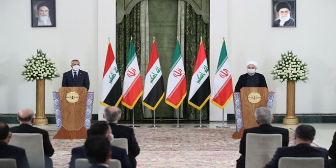 وشدد روحاني خلال مؤتمر صحفي مشترك عقده مع رئيس الوزراء العراقي مصطفى الكاظمي اليوم في طهران على أن هناك إرادة بين الحكومتين الإيرانية والعراقية لتنفيذ كل الاتفاقيات التي تم التوصل إليها بين الجانبين.