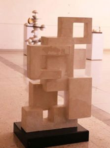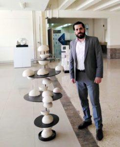 ويضيف من خلال بحث الماجستير قمت بإنجاز مجموعة أعمال مؤلفة من أربعة عشر عملاً نحتياً بأساليب متنوعة ما بين التكعيبية والتجريدية والبنائية فكان الهدف من تشكيلها التأكيد على جمالية العنصر الهندسي في الكتلة النحتية بالإضافة إلى أهمية الربط بين النحت والعمارة من قبل النحاتين الرواد في العصر الحديث الذين مهدوا لظهور المدارس الفنية الحديثة وتأثر بعض المعماريين من رواد العمارة الحديثة بهذه المدارس كما بدا واضحاً في أسلوبهم النحتي.