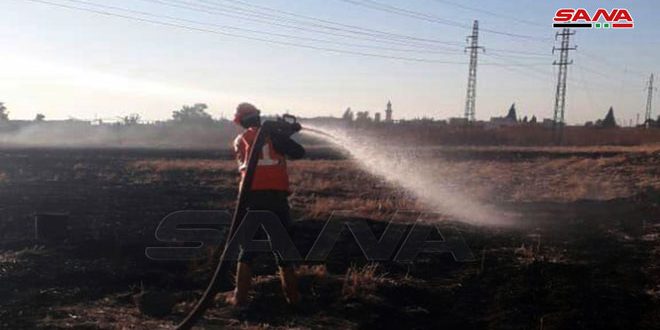 وأفاد قائد الفوج العقيد عثمان جودا في تصريح لمراسل سانا بأن عناصر فوج إطفاء حمص بالتعاون مع عناصر الدفاع المدني أخمدوا حريقاً طال بساتين مزروعة بأشجار الزيتون والتفاح بين بلدة شين وقرية روضة الوعر بريف حمص الغربي لافتاً إلى أن المساحة المحروقة تقدر بنحو دونم.