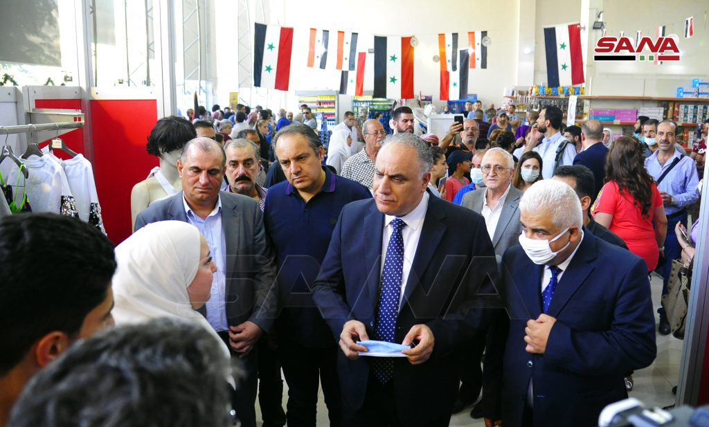وزير التجارة الداخلية وحماية المستهلك طلال البرازي أكد أن التشاركية بين غرفة صناعة دمشق وريفها والمؤسسة السورية للتجارة تهدف إلى تقديم المنتجات إلى المستهلك بأسعار أقل من الأسواق التجارية وتخفيف الأعباء الاقتصادية عنه وجميعها متوفرة بشكل عام مشيراً إلى أنه سيكون هناك معارض أخرى مستمرة بالمحافظات كافة قبل حلول عيد الأضحى المبارك وأخرى قبل افتتاح المدارس تهتم بالقرطاسية واللوازم المدرسية.