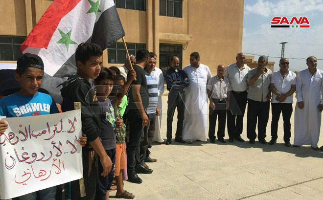 وقفة وطنية في قرية الوطوطية بريف القامشلي للمطالبة بخروج الاحتلالين الأمريكي والتركي