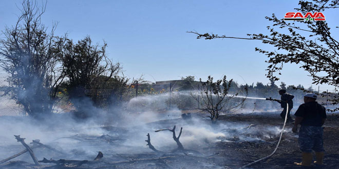 أخمد فوج إطفاء حمص اليوم حريقاً نشب ببساتين حي الوعر بمدينة حمص.