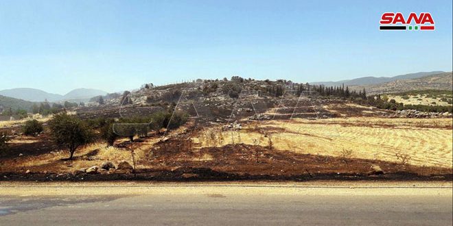 اندلع حريق صباح اليوم في المناطق الحراجية والزراعية في محيط منطقة الطلائع بريف مصياف جنوب غرب حماة فيما تواصل فرق الإطفاء التعامل مع الحريق لإخماده.