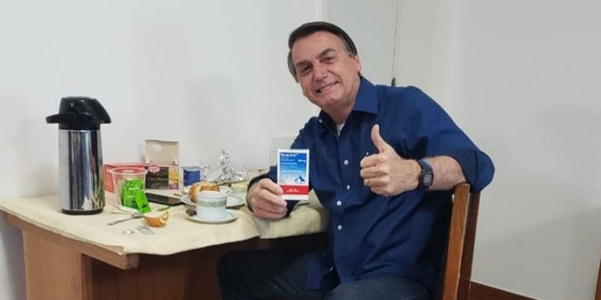 وكتب بولسونارو عبر تويتر “نتيجة اختبار فيروس كورونا سلبية” وأرفق المنشور بصورة تظهره مبتسماً ورافعاً إبهامه إلى الأعلى في إشارة للرضا.
