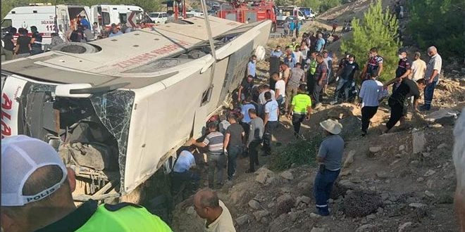 قتل 5 جنود أتراك وأصيب 10 آخرون اليوم جراء انقلاب حافلة كانت تقلهم بولاية مرسين جنوب تركيا.