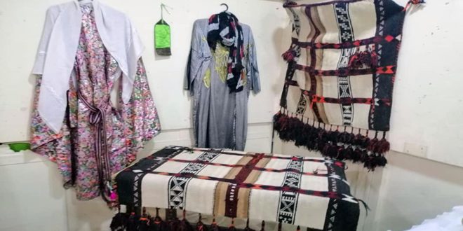 المعرض الذي جاء بعنوان (تاء التأنيث الفاعلة) يقام بالتعاون بين مديرية الثقافة وبرنامج الأمم المتحدة الإنمائي ويضم اللباس التراثي والسجاد والمطرزات وأدوات المطبخ والزراعة والفخاريات إضافة إلى قسم لعرض أعمال يدوية تراثية ومنوعة من صناعة عدد من الفتيات والنساء.