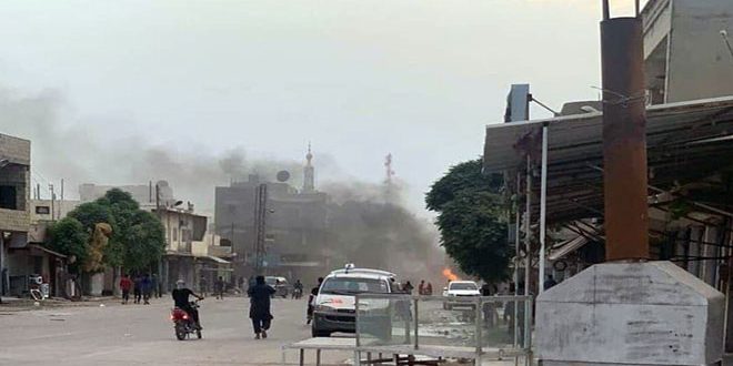 وكان استشهد أول أمس 8 مدنيين بينهم نساء وأطفال جراء انفجار سيارة مفخخة كانت مركونة في سوق لبيع الخضار في مدينة رأس العين بريف الحسكة ما تسبب أيضا بإصابة عدد من المدنيين بجروح بعضها بليغة ووقوع أضرار مادية في ممتلكات الأهالي.