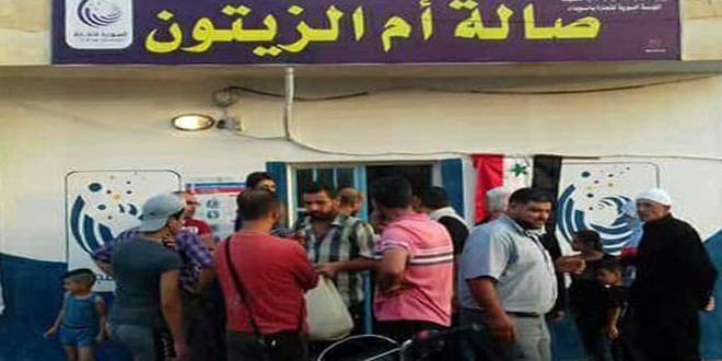 أحدث فرع المؤسسة السورية للتجارة في محافظة السويداء منفذا لبيع المواد الاستهلاكية في قرية أم الزيتون بالريف الشمالي للمحافظة.