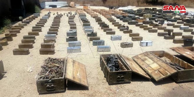 وذكر مراسل سانا في حمص أن الجهات المختصة ومن خلال المتابعة الدائمة والدقيقة لشبكات تهريب الأسلحة والذخائر للمجموعات الإرهابية ضبطت عند الحدود الإدارية بين محافظتي حمص وحماة كمية كبيرة ومتنوعة من الأسلحة والذخيرة أثناء محاولة تهريبها إلى الإرهابيين في ريف إدلب الشمالي.