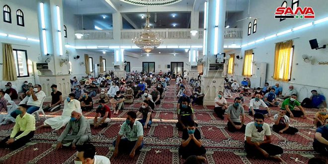 استجابة للإجراءات الاحترازية للتصدي لفيروس كورونا أديت صلاة عيد الأضحى المبارك في دمشق وريف دمشق هذا العام في المنازل بعد أن علقت وزارة الأوقاف إقامتها بمساجد المحافظتين التي أذاعت تكبيرات العيد عبر المآذن فيما أقيمت الصلاة في باقي مساجد المحافظات كالمعتاد وسط شروط صحية وإجراءات احترازية مشددة.