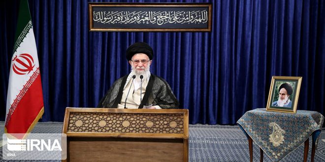 وقال الخامنئي في خطاب وجهه اليوم عبر التلفزيون بمناسبة حلول عيد الأضحى إن الولايات المتحدة تسعى من وراء الحظر الذي تفرضه على إيران إلى تحقيق هدفين أولهما على المدى القصير والمتمثل بالضغط على الشعب الإيراني والوقوف بوجه تطوره العلمي وضرب روحه المعنوية من خلال تحريف الحقائق وثانيهما على المدى الطويل ويتمثل بمحاولة ضرب الاقتصاد الإيراني ووقف دعم طهران للمقاومة.