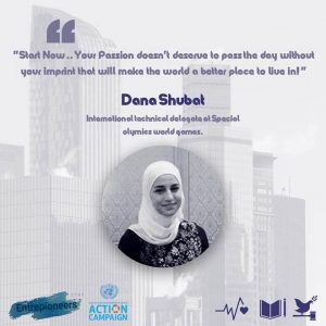 وبينت شباط أن الرياضة تساعد على تقوية الجسد عضليا وهي بحاجة إلى تنمية فكرية ليتشابك الجسم السليم بالعقل السليم ومن هذا المبدأ انطلقت نحو المساهمة في تمكين الشباب ليكونوا فاعلين أكثر في المجتمع من خلال ورشات وإدارة حوارات في التنمية المستدامة بعد اختيارها من بين 16 شابا من كل أنحاء العالم ضمن منظمة عالمية شبابية تابعة للأمم المتحدة فكان لها حضور ومشاركة في استراليا ومونتينيغرو وتنزانيا ومصر وكينيا.