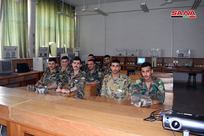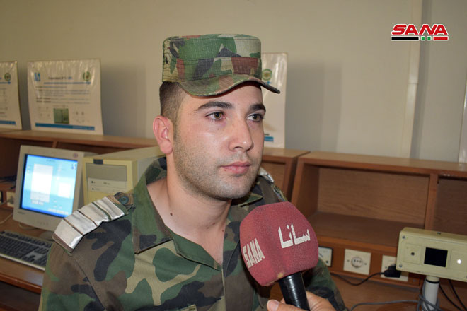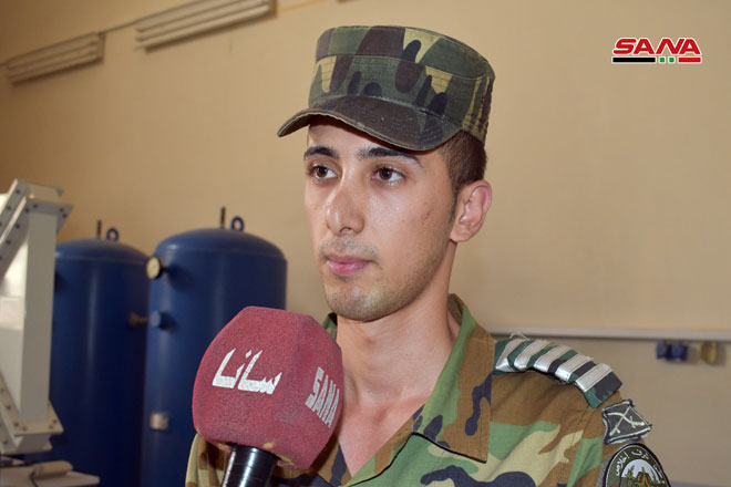 وفي صالات التدريب على الأجهزة التقنية والعلوم العسكرية أوضح الطالب صلاح أنه بذكرى تأسيس الجيش نقدم التحية لأرواح الشهداء الذين قدموا دماءهم السخية للذود عن حمى الوطن.. ونعاهد قائد الوطن على الاستمرار بالتدريب وتلقي العلوم والمعارف للإسهام في الدفاع عن تراب سورية ودحر العدوان.